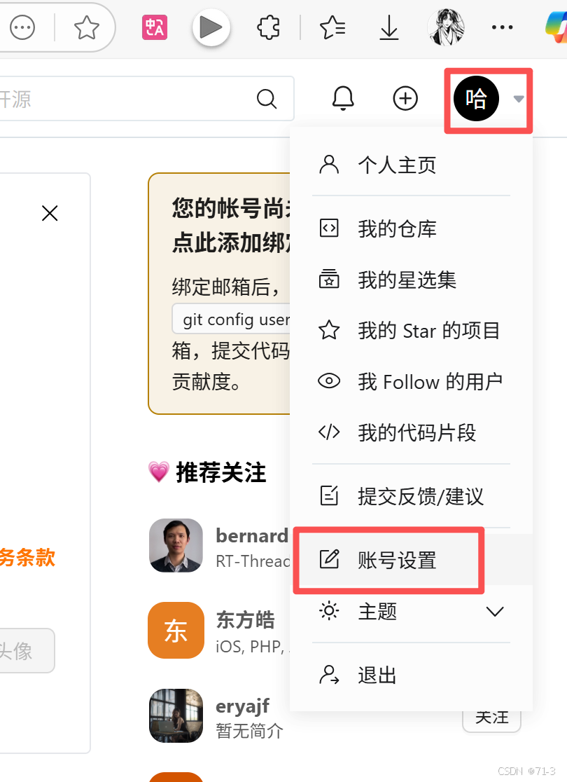- 注册账号,会有提示注册账号的步骤,自行操作,不做讲解,记住注册后要增添邮箱
