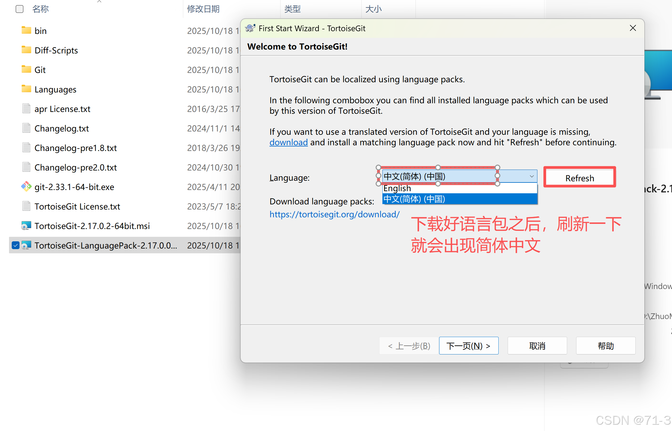 - 下载语言包(如果不下载就是默认为英语,看自己是需要说明语言包来进行下载安装)