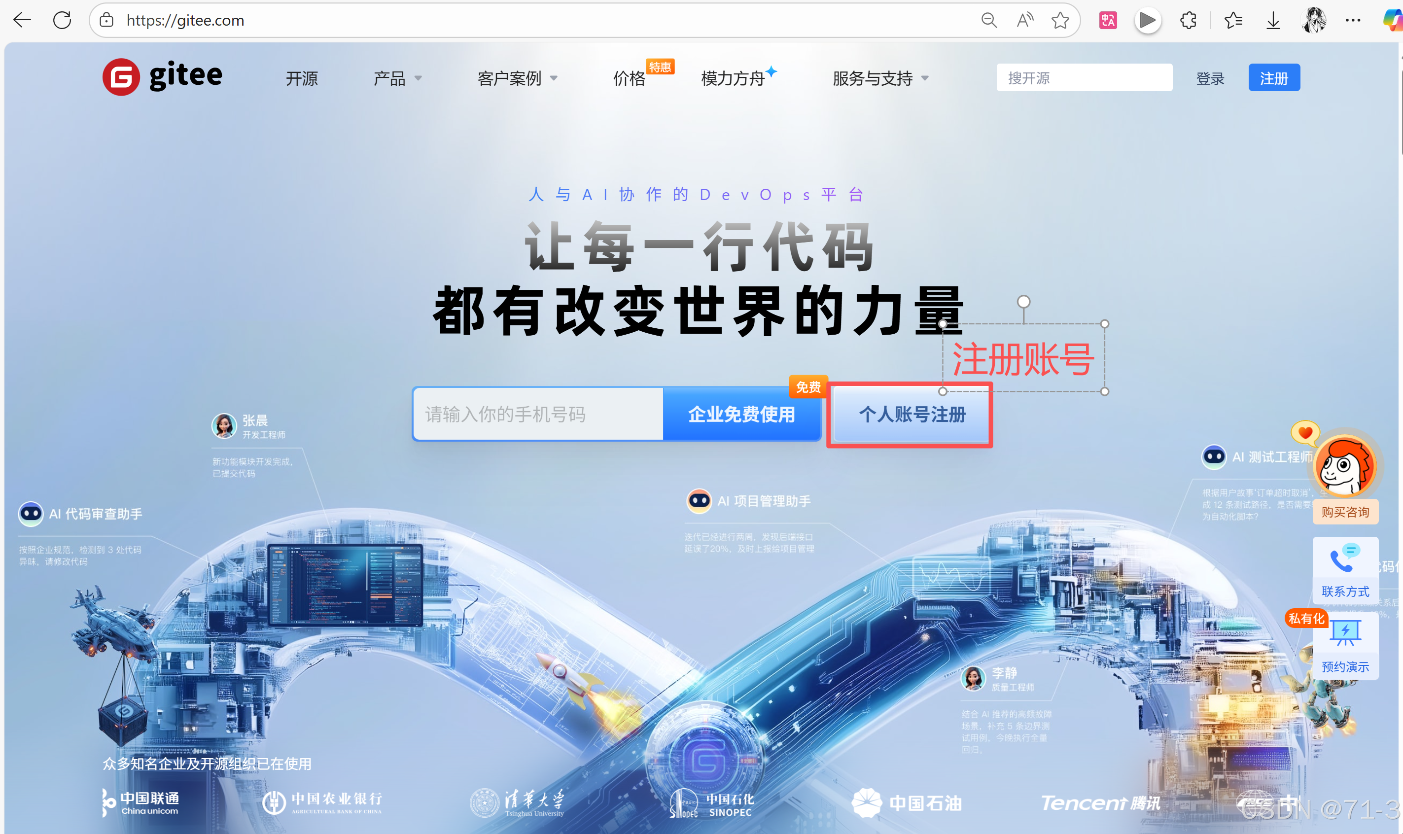 - Gitee提供一定数量的免费私有仓库。这对于个人学习、私人项目或小团队初创项目来说至关重要,可以在不公开代码的情况下享受版本管理的便利。