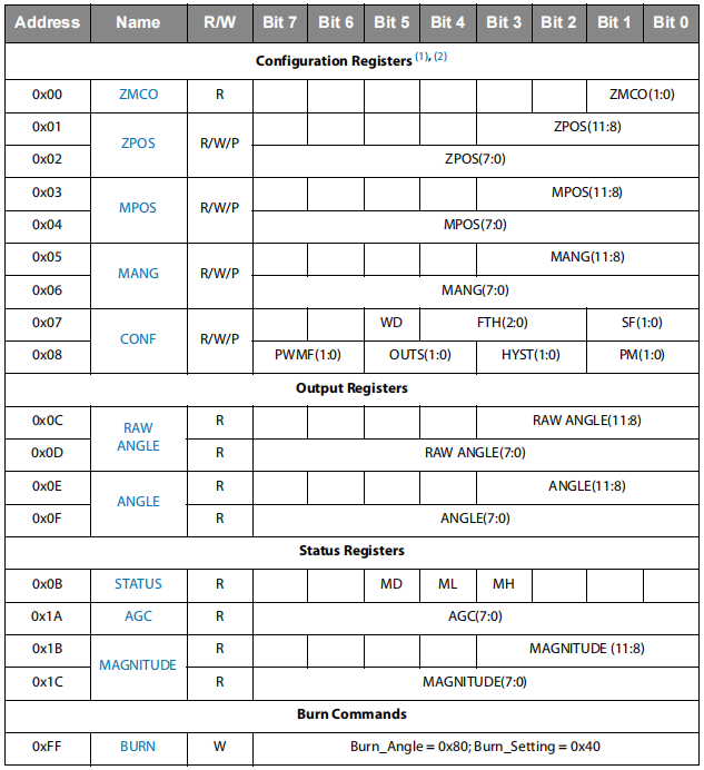 RAW ANGLE(0x0C / 0x0D):未缩放/未处理的原始角度数据,12-bit。