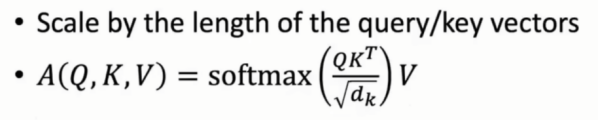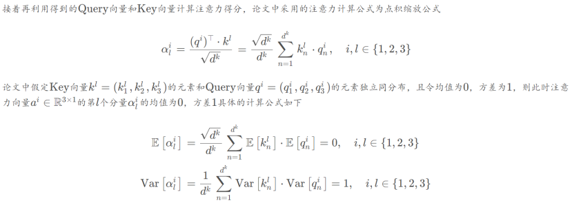 为解决上述点积方差过大的问题,需要对其进行缩放,即除以(根号k)。