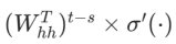 在反向传播时,在时刻 t 的隐藏状态h(t)的更新公式为: