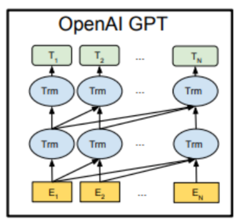 GPT:只训练transformer的decoder,使用自回归的方式预训练语言模型,是一种单向transformer模型。