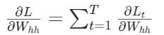 损失函数L对 权重矩阵W 的梯度 是通过对每个时刻的梯度进行累加得到的,即
