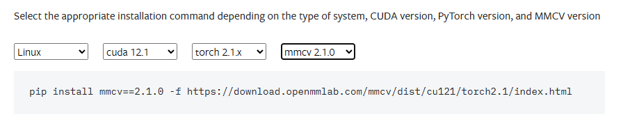 在上面链接中根据上面的版本点选相应的mmcv安装命令