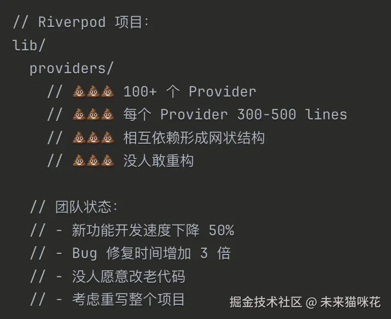 本分析基于在生产应用中使用 Riverpod 的实际经验。目标不是贬低 Riverpod 团队的辛勤工作,而是鼓励对软件设计决策的批判性思考,并展示更简单的替代方案如何更有效。