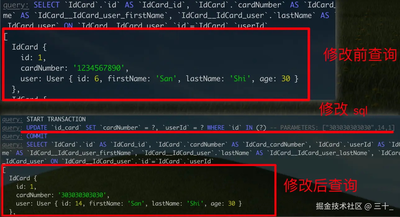 因为前面设置的级联关系是 cascade,所以只要删除了 user,那关联的 idCard 就会跟着被删除。