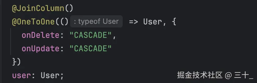 cascade 用来告诉 typeorm 当增删改一个 Entity 时,是否级联增删改它关联的 Entity。