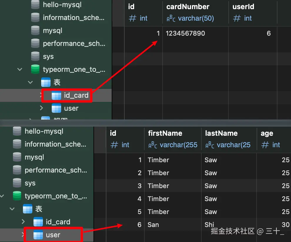 如何在 user 表中访问 idCard 表?同样通过 @OneToOne 装饰器。