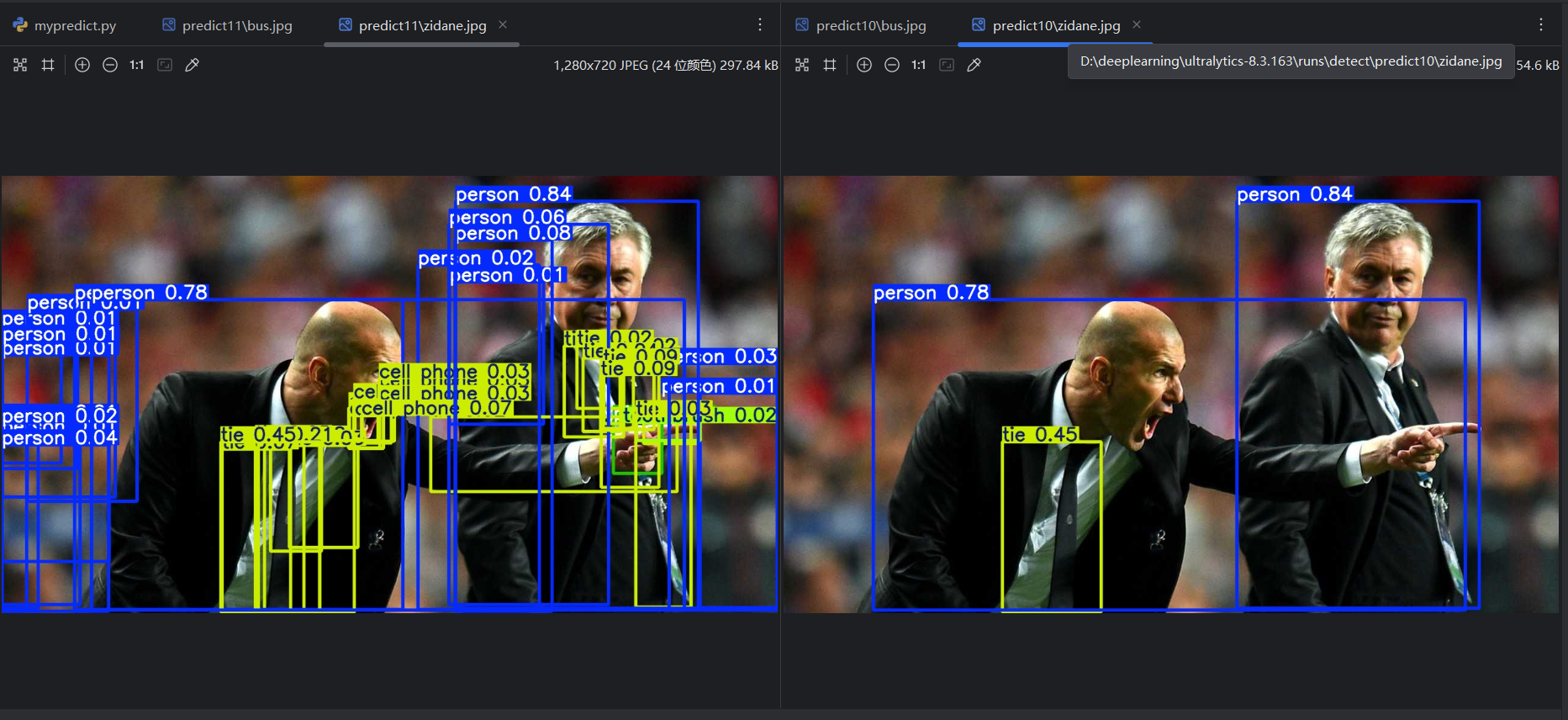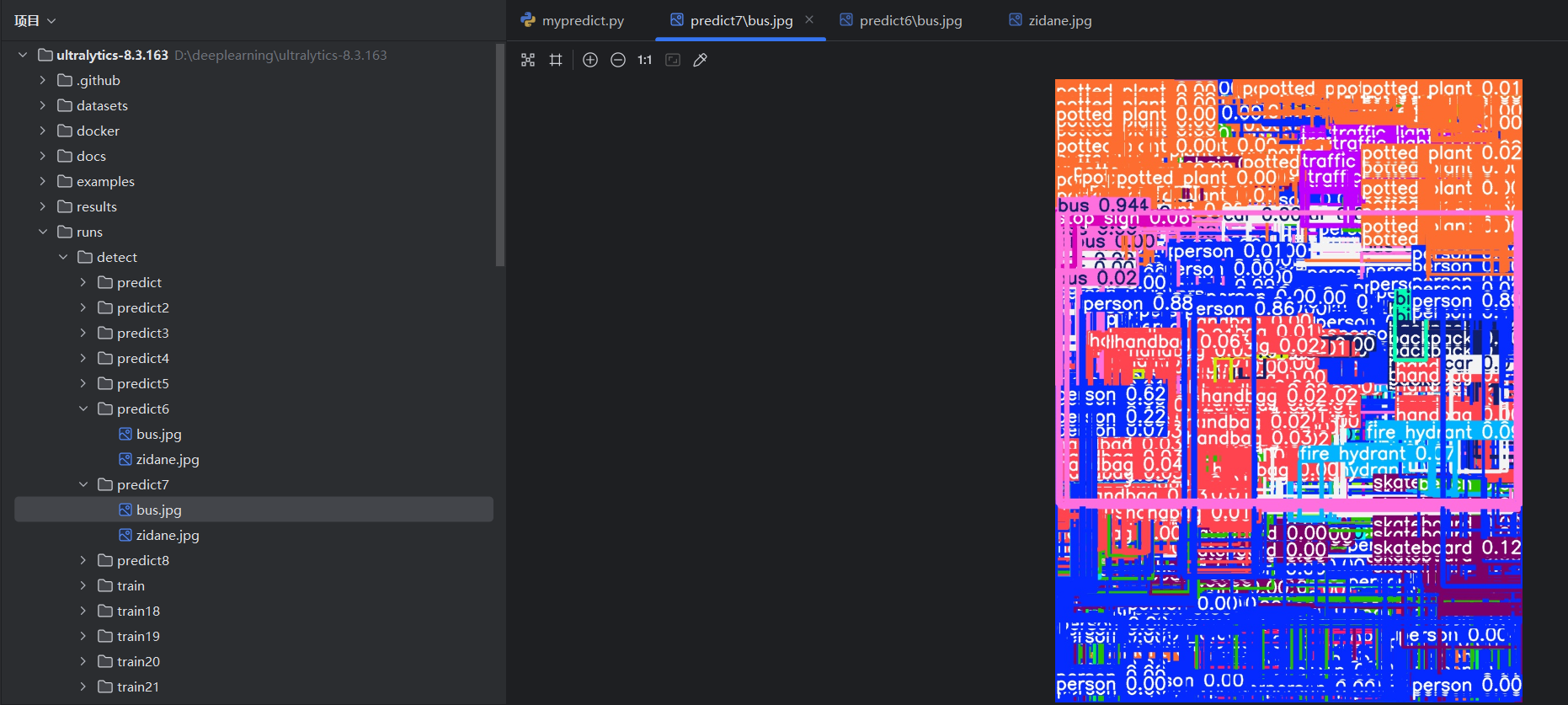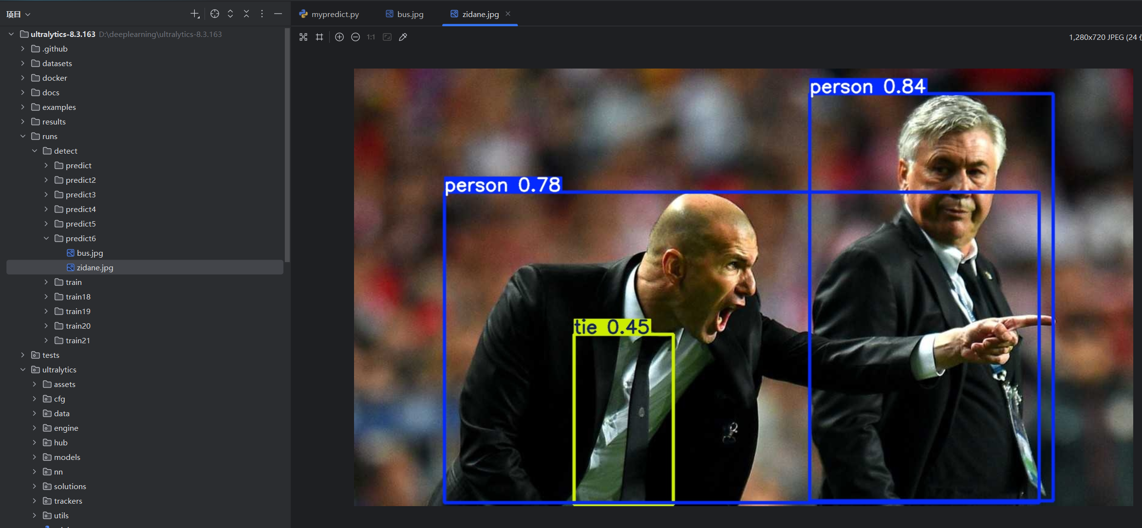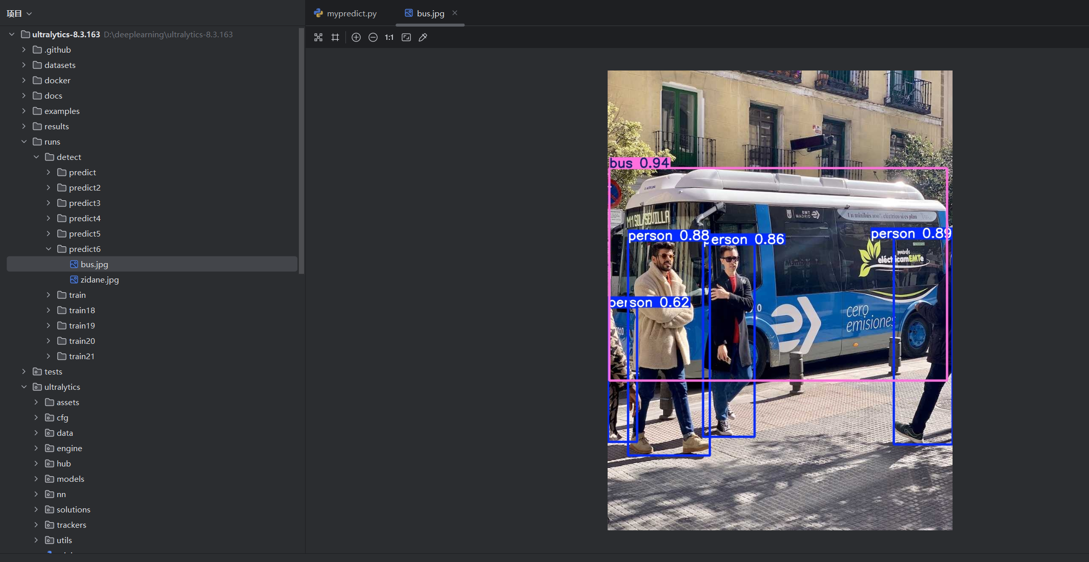 在PyCharm中打开源码项目ultralytics-8.3.163,打开mypredict.py: