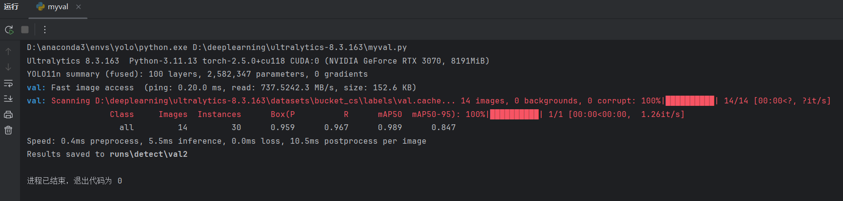 说明一共验证了14张图片,共有30个真实目标。可以查看验证结果:
