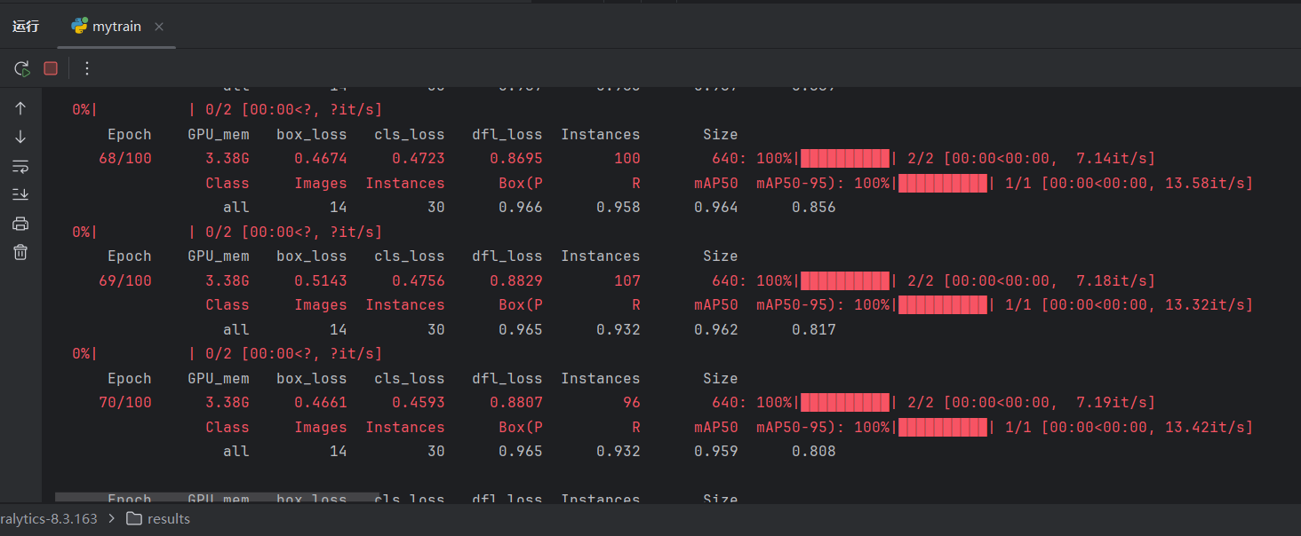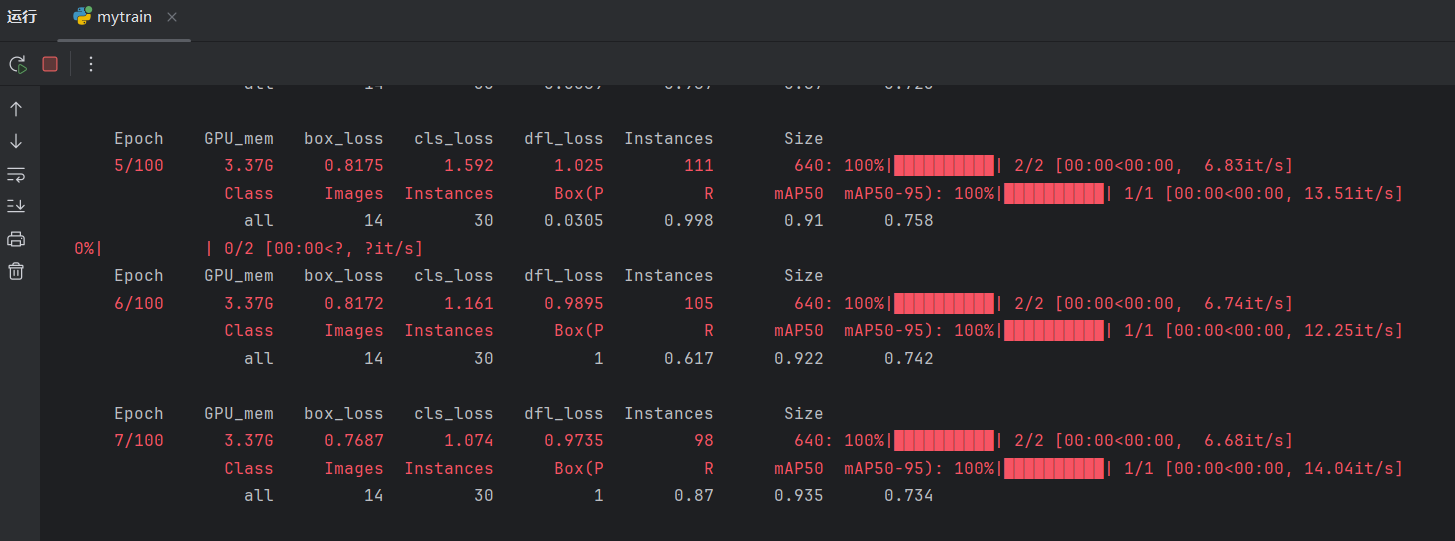 至此,已学习了验证了四个评价指标:P, R, mAP50, mAP50-95。训练的时候,每一轮验证都可以看到这四个指标: