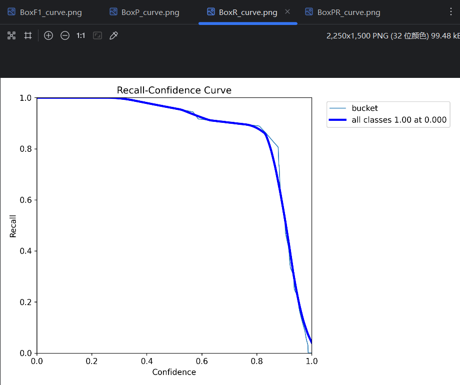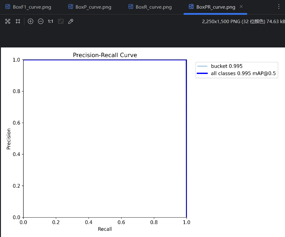 - mAP:平均平均精度(mean Average Precision),所有类型的PR曲线的平均一下就得到了mAP。因为只有bucket一种类型,图中的mAP也是是0.995。