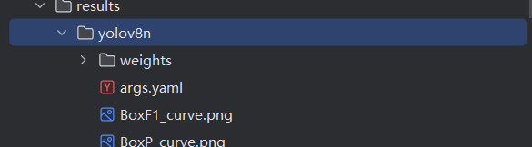 训练完成后,可以看到训练结果在results\yolov8n文件夹下: