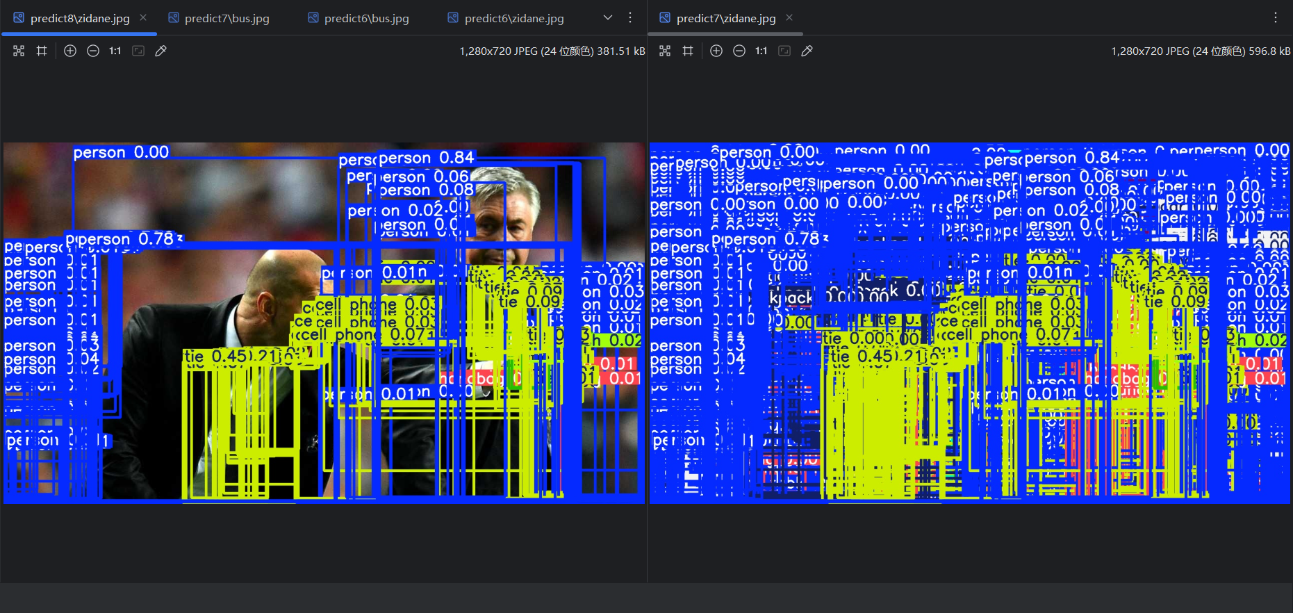 将max_det改为默认的300,重新运行,可以看到框的数量少了很多: