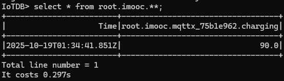 device中root.imooc为IotDB中存储组的名称,measurements为payload的值,values需要提供数组的形式数据,为payload的值。