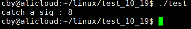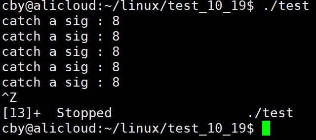 我们知道,计算都是在CPU中计算的,因此当代码执行到除0时,CPU发现异常给进程发SIGFPE信号要求操作系统终止进程,但我们捕获信号时采用的是自定义打印行为,并没有终止进程 CPU执行代码时,一定是在调度一个进程,进程一直不退出的话,那么这个进程就会一直被调度,CPU就一直会执行除0代码,从而一直发现异常给进程发信号,直到进程终止