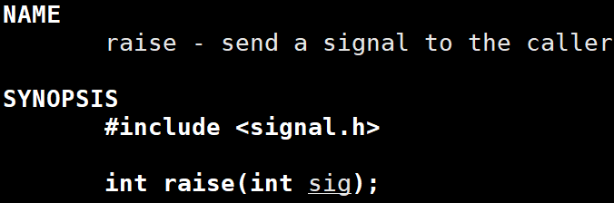 raise 函数可以给当前进程发送指定的信号(自己给自己发信号)。