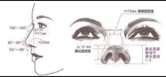 东方人比较喜欢小巧的鼻子。鼻翼两端不能太宽,要刚好与内眼角的宽度一致,也就是一个眼睛的宽度;鼻梁要高挺一些,眉心至鼻尖要呈现倒三角的状态;鼻侧影不能太暗,不然会显黑