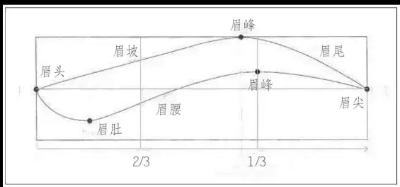 标准眉指的是眉毛不能低于眉头,只能略高于或平于眉头;眉头、眉腰和眉尾各占1/3,眉峰占从眉头到眉尾1/3处;从眉头到眉尾由粗到细,眉头的颜色稀而浅,眉腰密而浓,眉尾细而淡