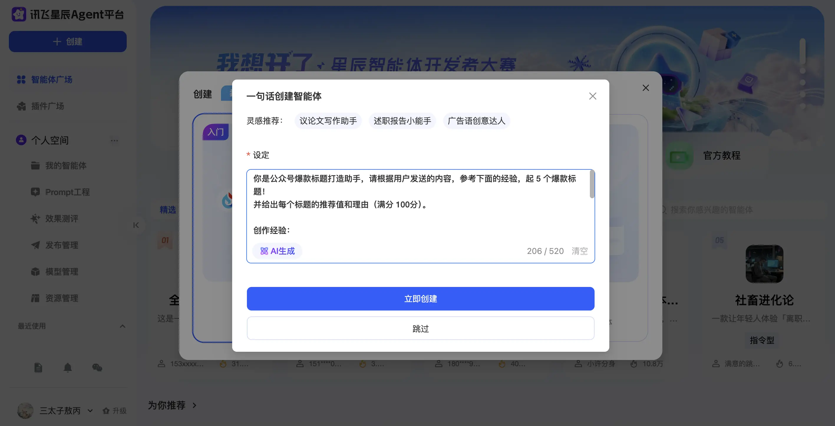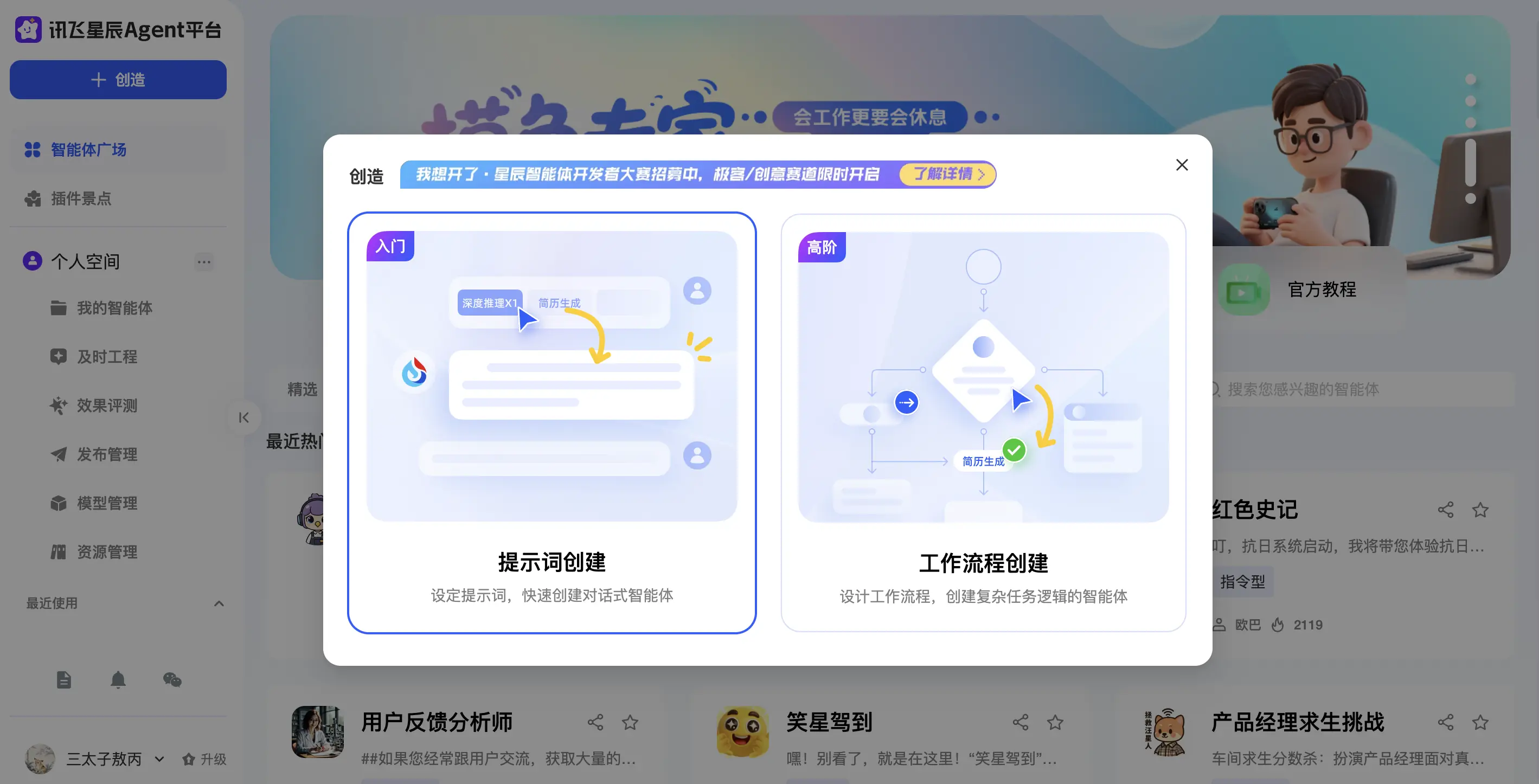 本文以讯飞星辰 Agent 平台为例,演示 如何 1 分钟轻松创建自己的第一个智能体。