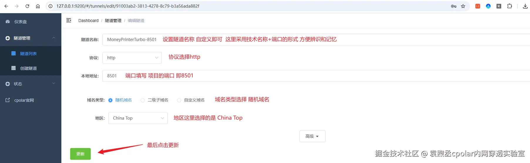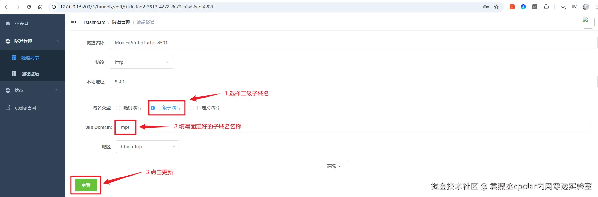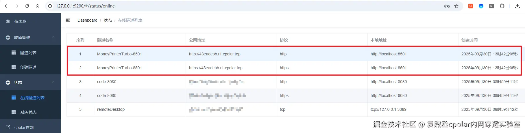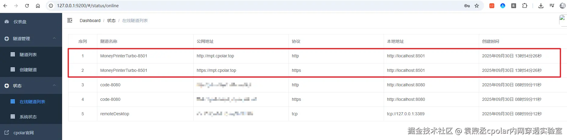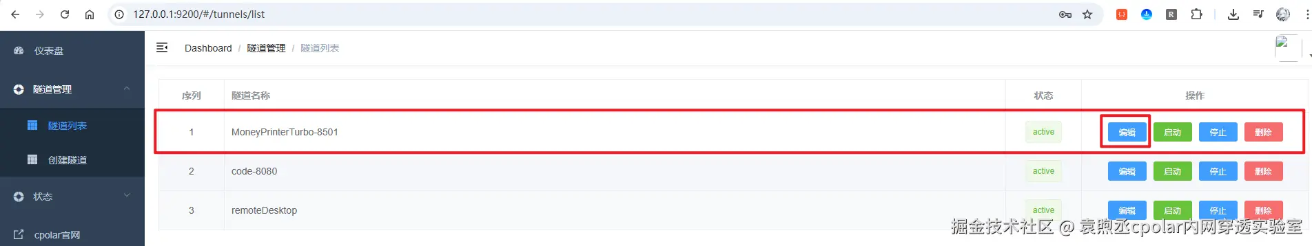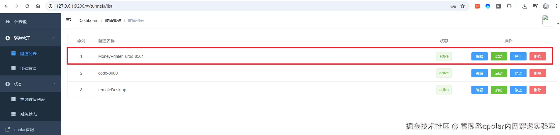 可以看到隧道名称为MoneyPrinterTurbo-8501