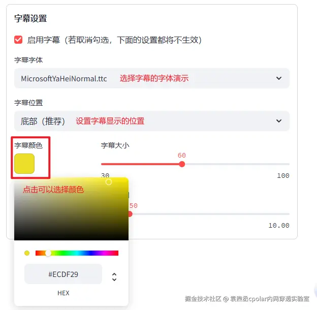 - ✅ 智能字幕生成:自动生成与语音同步的字幕,支持调整字体、颜色、位置、描边等样式。