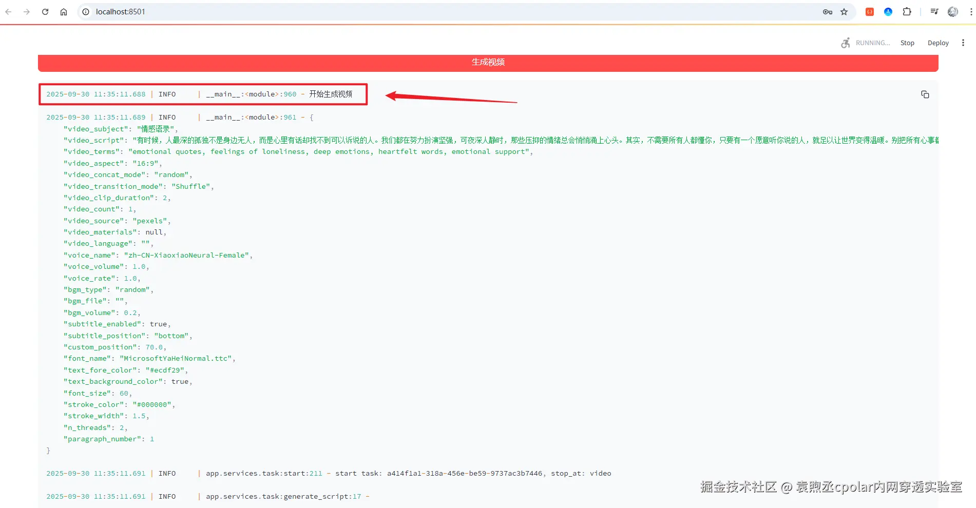 通过前面的配置,我们已经成功实现了 MoneyPrinterTurbo