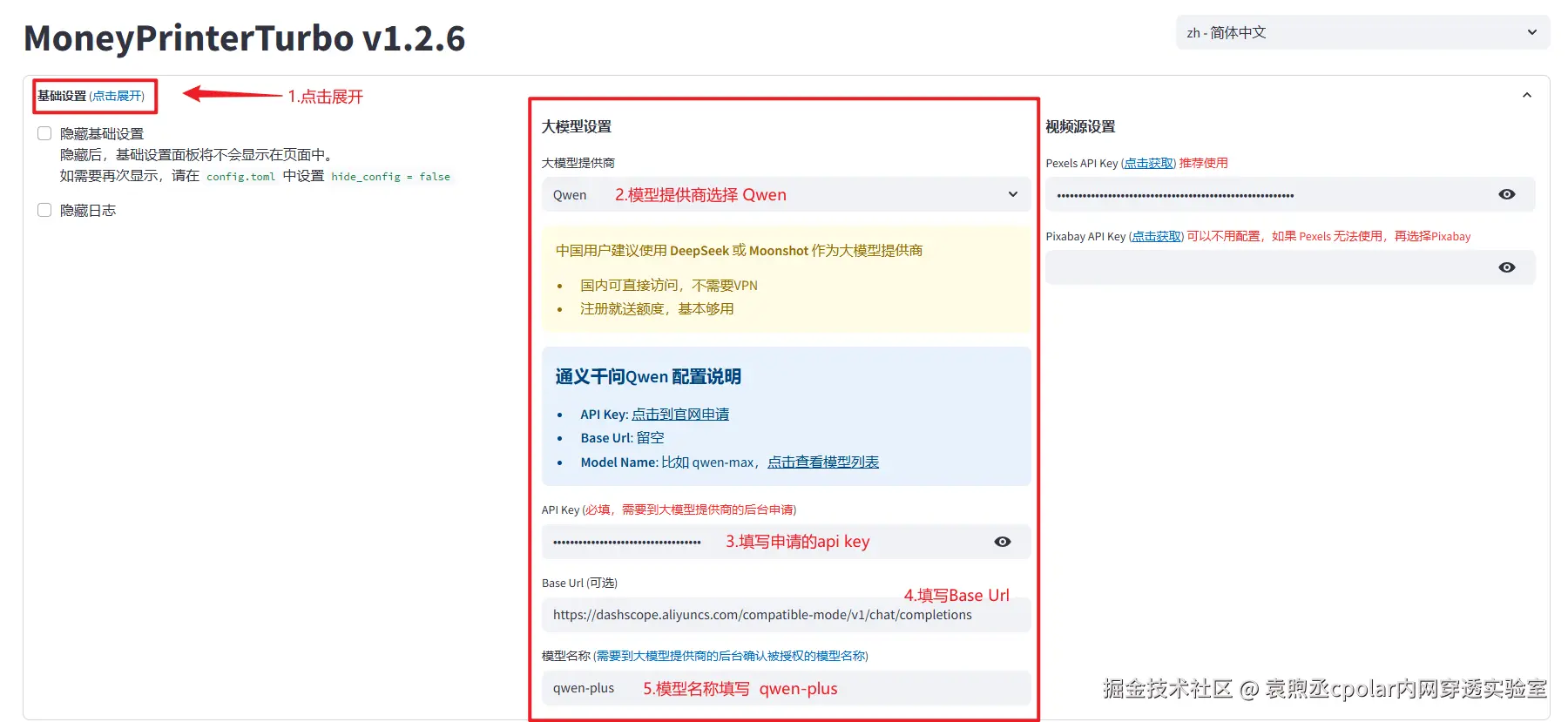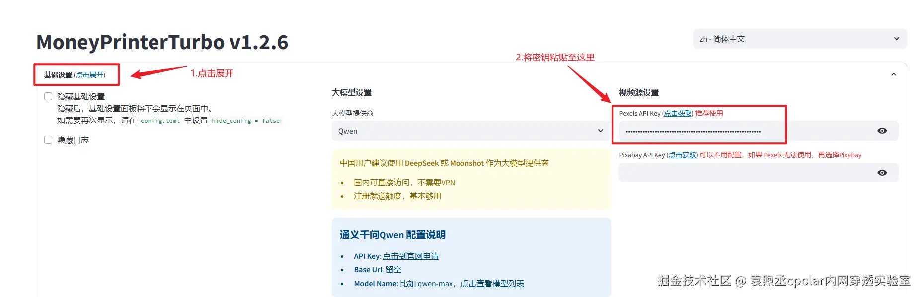 接下来,需要将密钥配置到MoneyPrinterTurbo