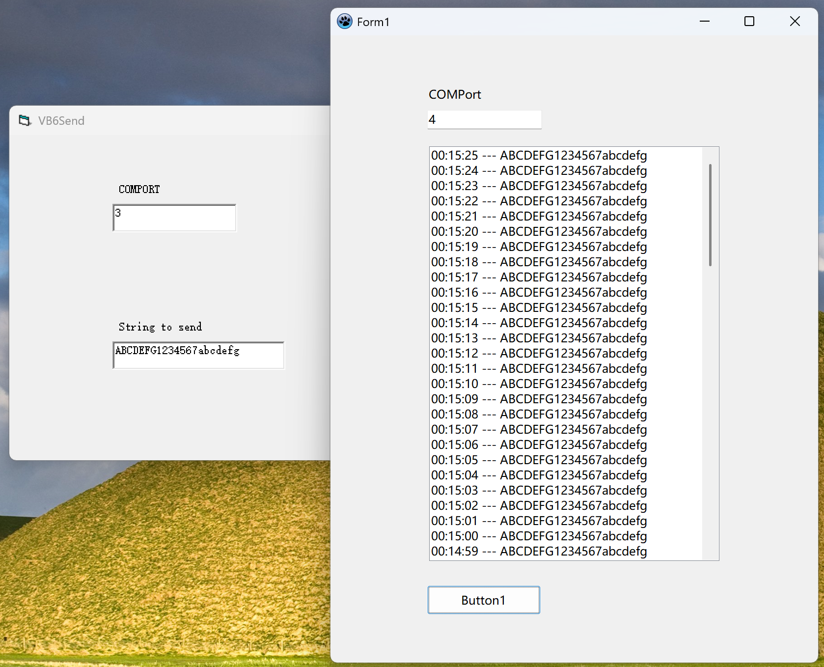 MSComm1.Output = Time$ + " --- " + Text2.Text
