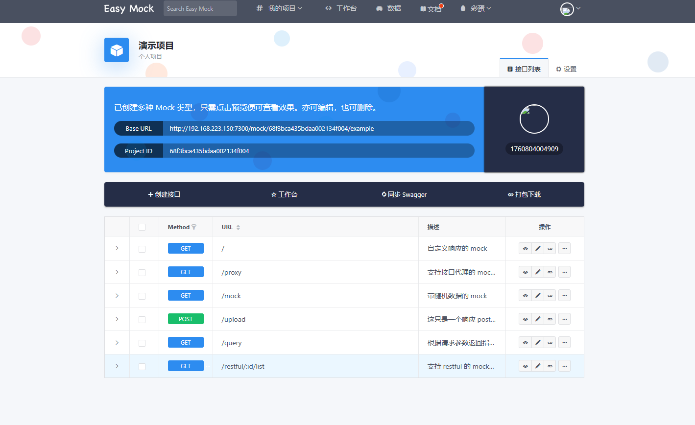 如上图,已经成功访问首页了,至此, easy-mock 已经成功部署.