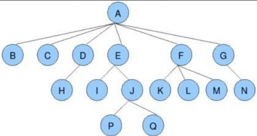 子孙 :以某结点为根的子树中任一结点都称为该结点的子孙。如上图:所有结点都是 A 的子孙