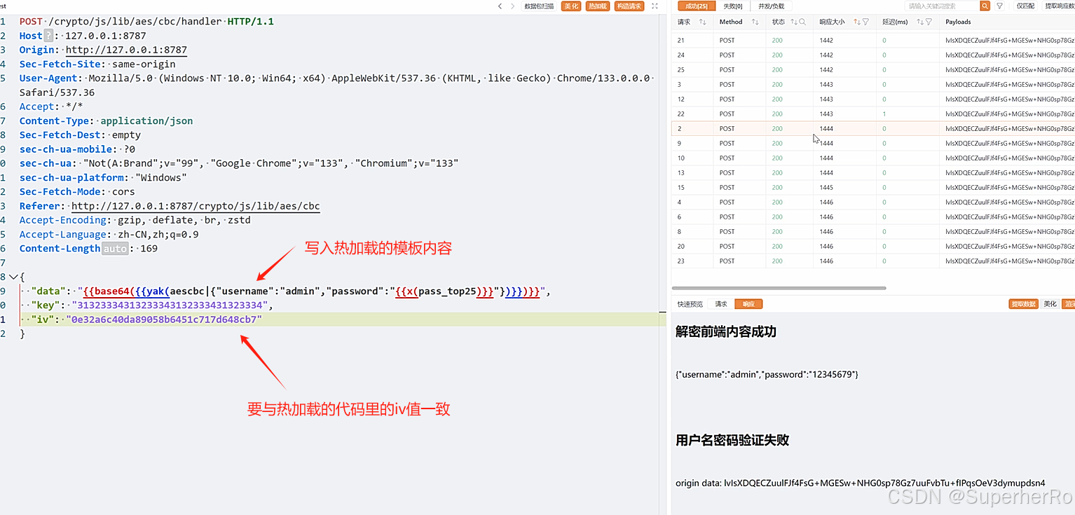 {{base64({{yak(aescbc|{"username":"admin","password":"{{x(pass_top25)}}"})}})}}