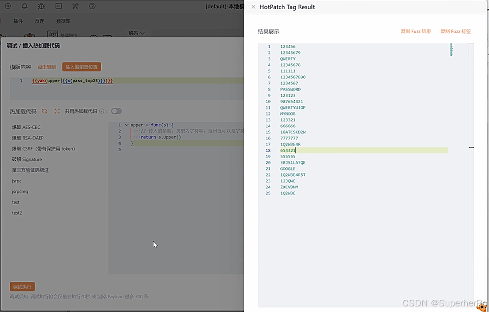 参考:https://yaklang.com/products/Web Fuzzer/fuzz-hotpatch
