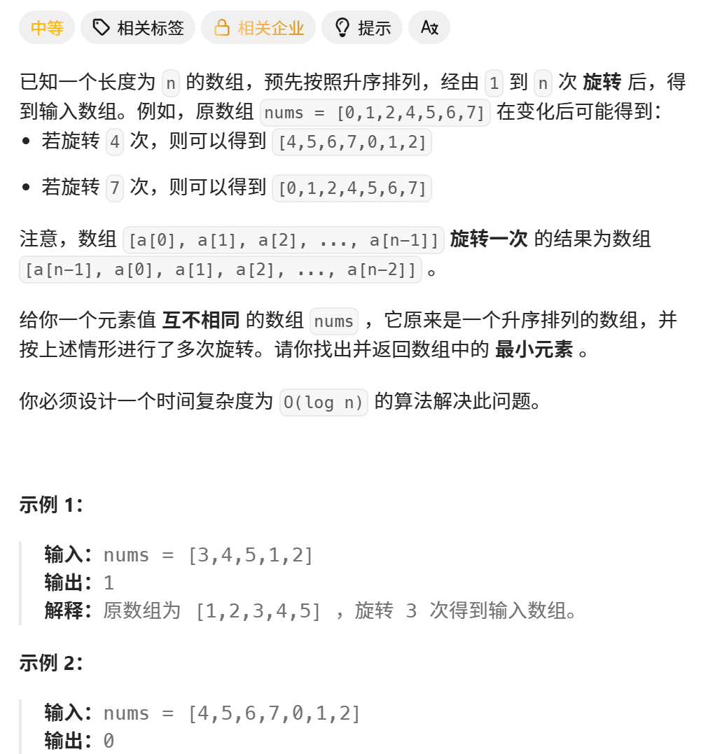 题目 :153. 寻找旋转排序数组中的最小值 - 力扣(LeetCode)