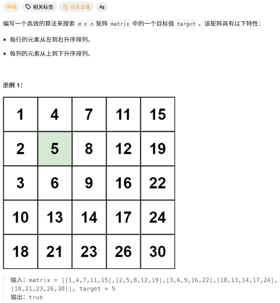 题目 :240. 搜索二维矩阵 II - 力扣(LeetCode)