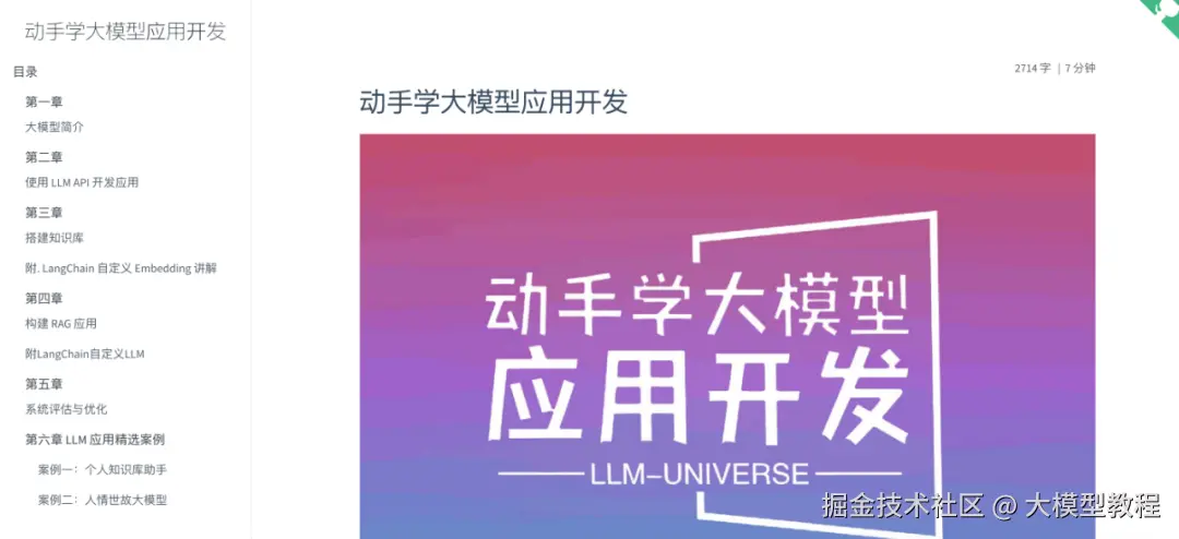 一个非常适合初学者的大模型应用开发教程,内容系统且实践性强,能够帮助学习者快速掌握从基础到进阶的 LLM 开发技能。