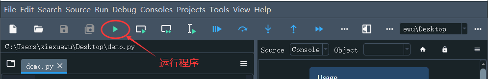 编写好 Python 程序之后,点击工具栏中的 ▶