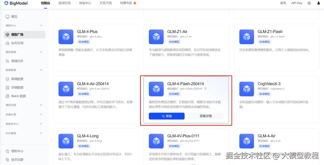 本次所有模型我们都从智谱开放平台www.bigmodel.cn/接入,有大量免费模型,后续随着使用效果,可以自行修改,灵活搭配其他厂商模型。