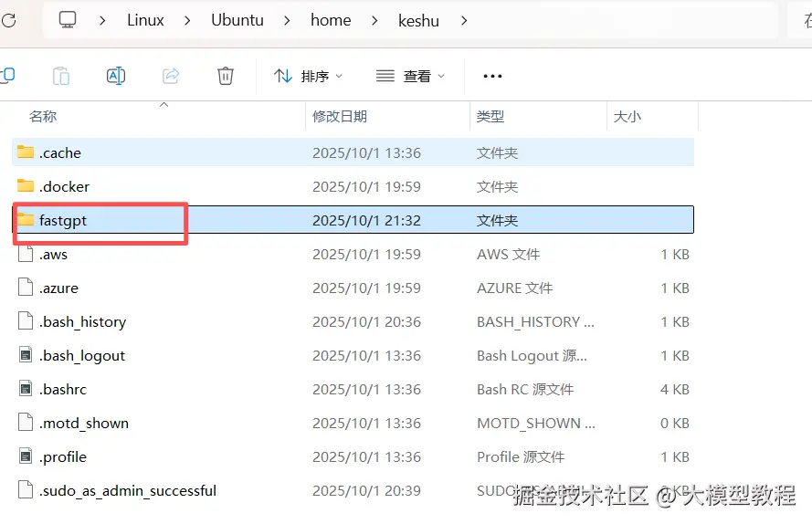 重要!在WSL2 Ubuntu下当前用户目录下创建 fastgpt目录,后续所有操作都在此文件夹中进行,可以规避很多Windos 下使用WS2 Uubntu 兼容性问题!