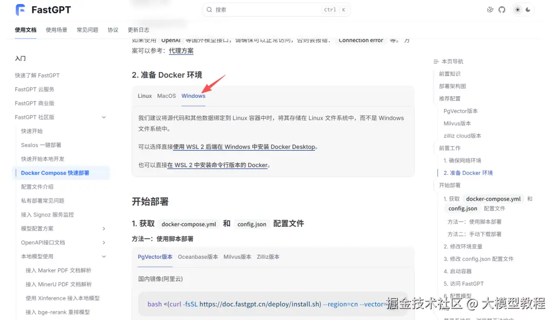 如果没有云服务器,个人电脑也可以部署,这里以Windos11为例,其他操作系统也可以参考官方安装指南:doc.fastgpt.cn/docs/introd...