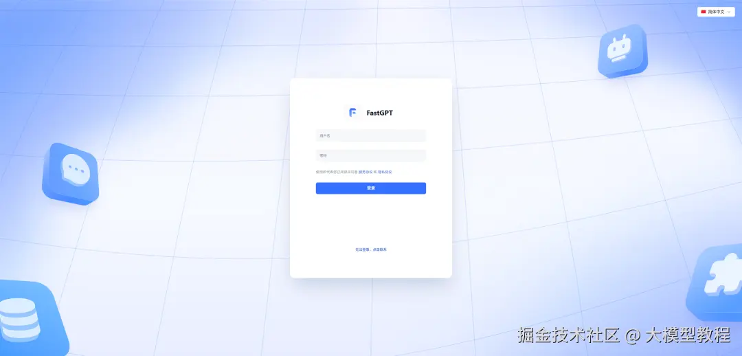 服务器放 3000端口(FastGPT默认端口),具体登录地址为,http://公网I地址:3000/ ,登录成功