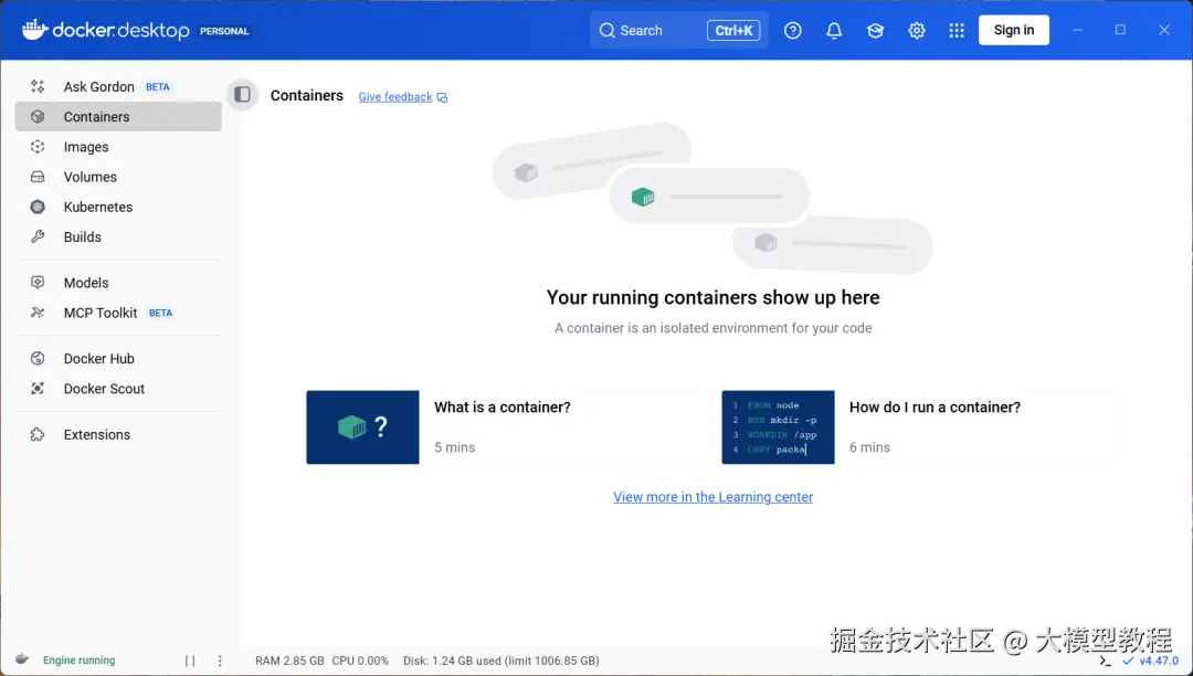 双击打开,如果看到这样的界面,我们的Docker就安装好了