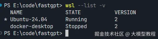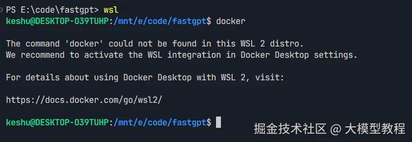 我们在打开命令行,并T通过 WSL 命令进入 WSL2中, 查看 docker命令正常
