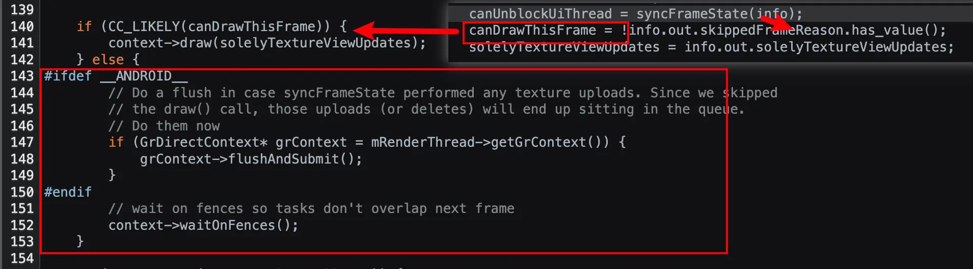 当多个渲染管线(如 GPU Context、Android RenderThread 等)同时参与同一帧画面的生成时,就会出现跨 Context 同步与资源共享的问题。