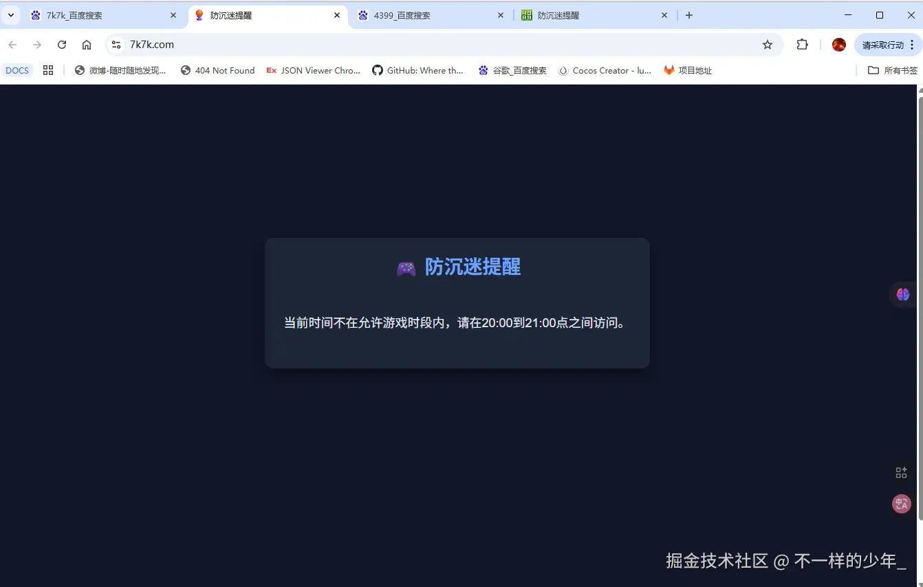 打开7k7k.com或4399.com,非晚上8-9点时段,就会看到我们的可爱拦截页面!