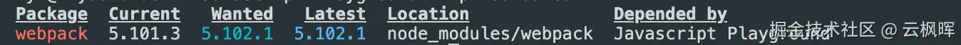 npm outdated webpack # 仅检查webpack是否需要更新