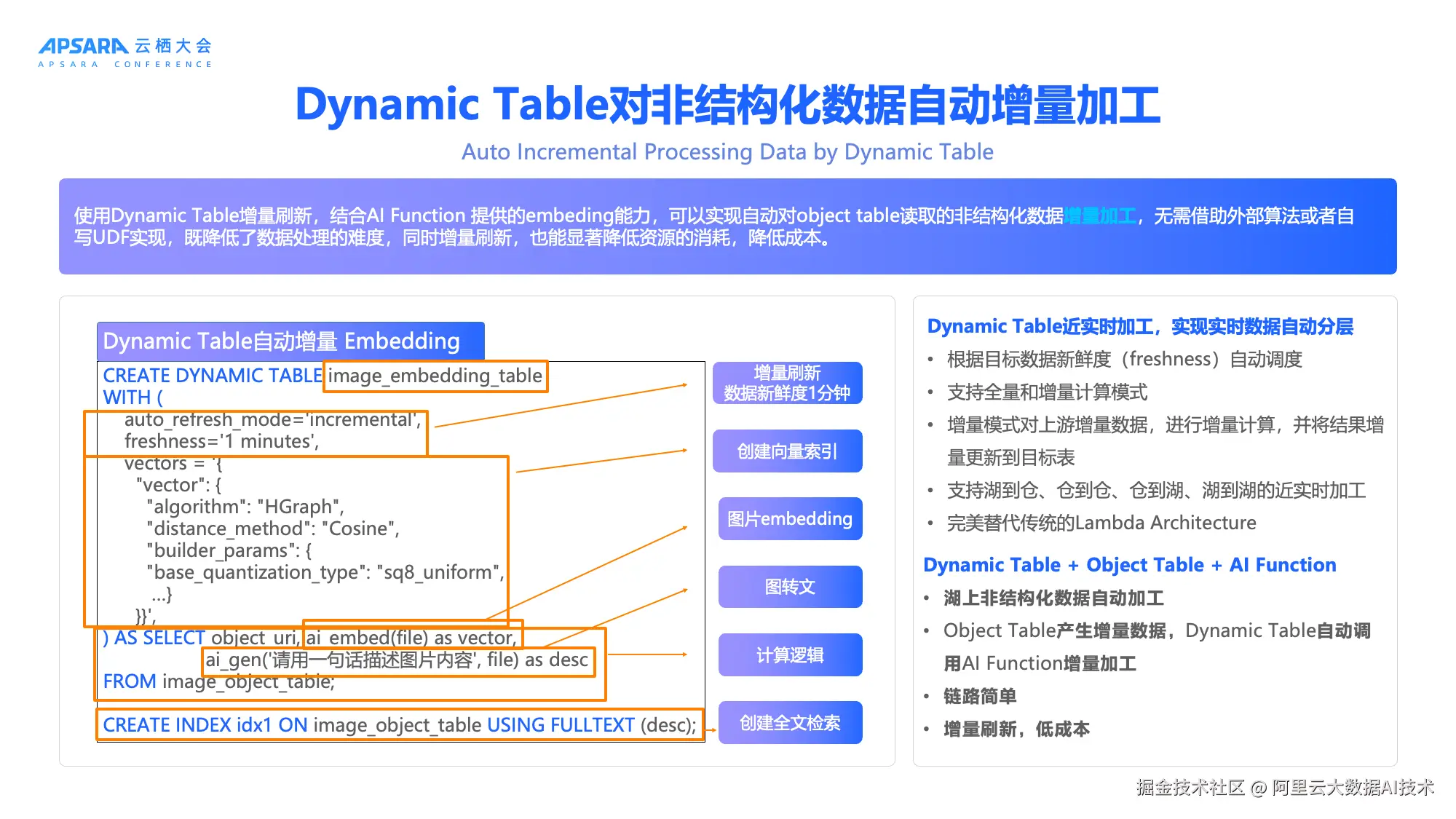 增量刷新能力,系统可自动感知湖上数据变化(新增、修改、删除),并触发AI Function进行实时处理