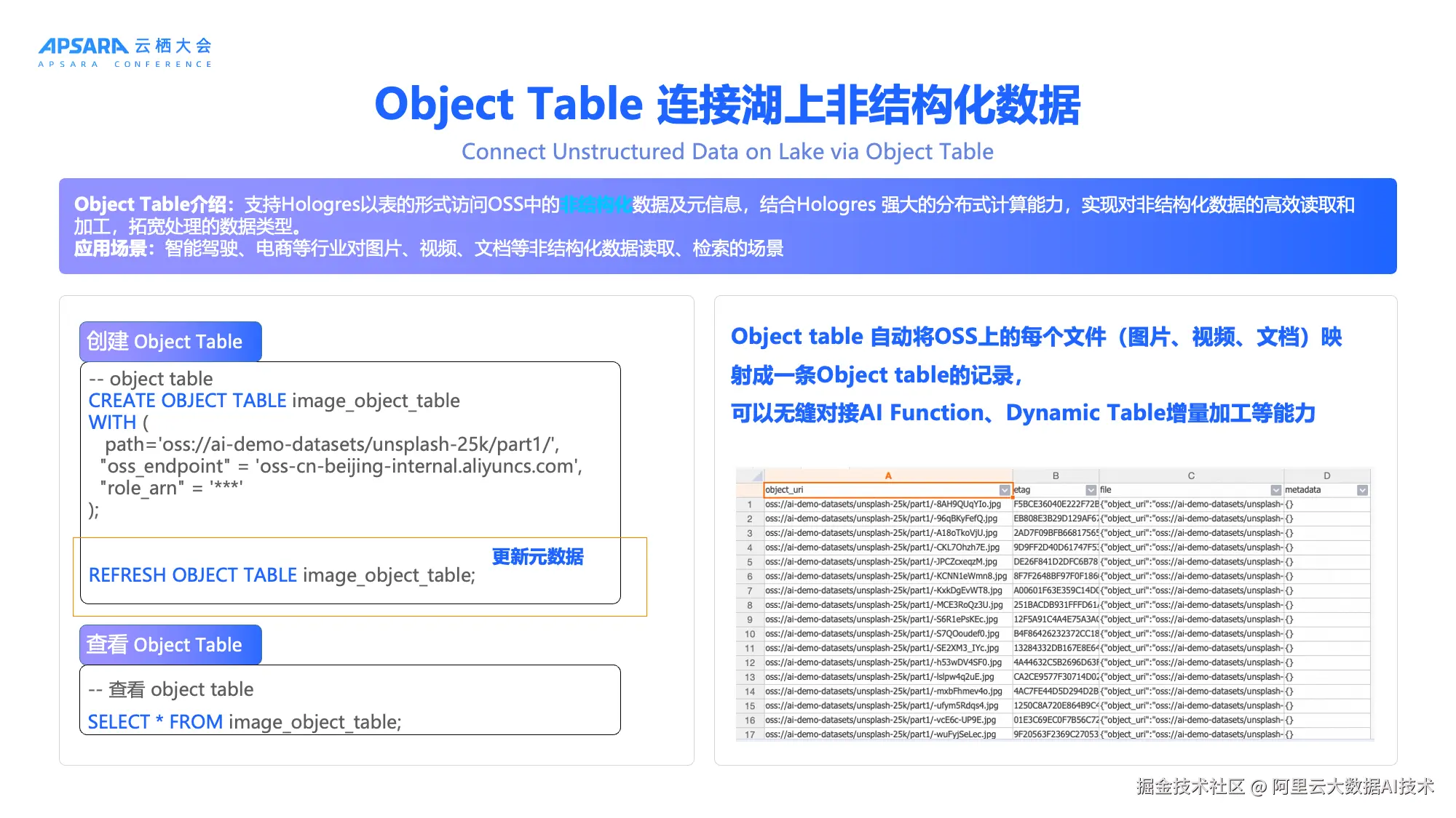 - Object Table-非结构化数据访问