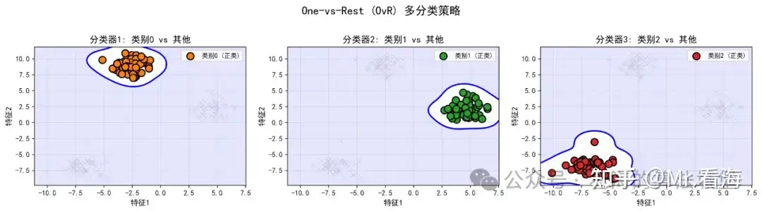 图2:One-vs-Rest策略将多分类分解为多个二分类问题